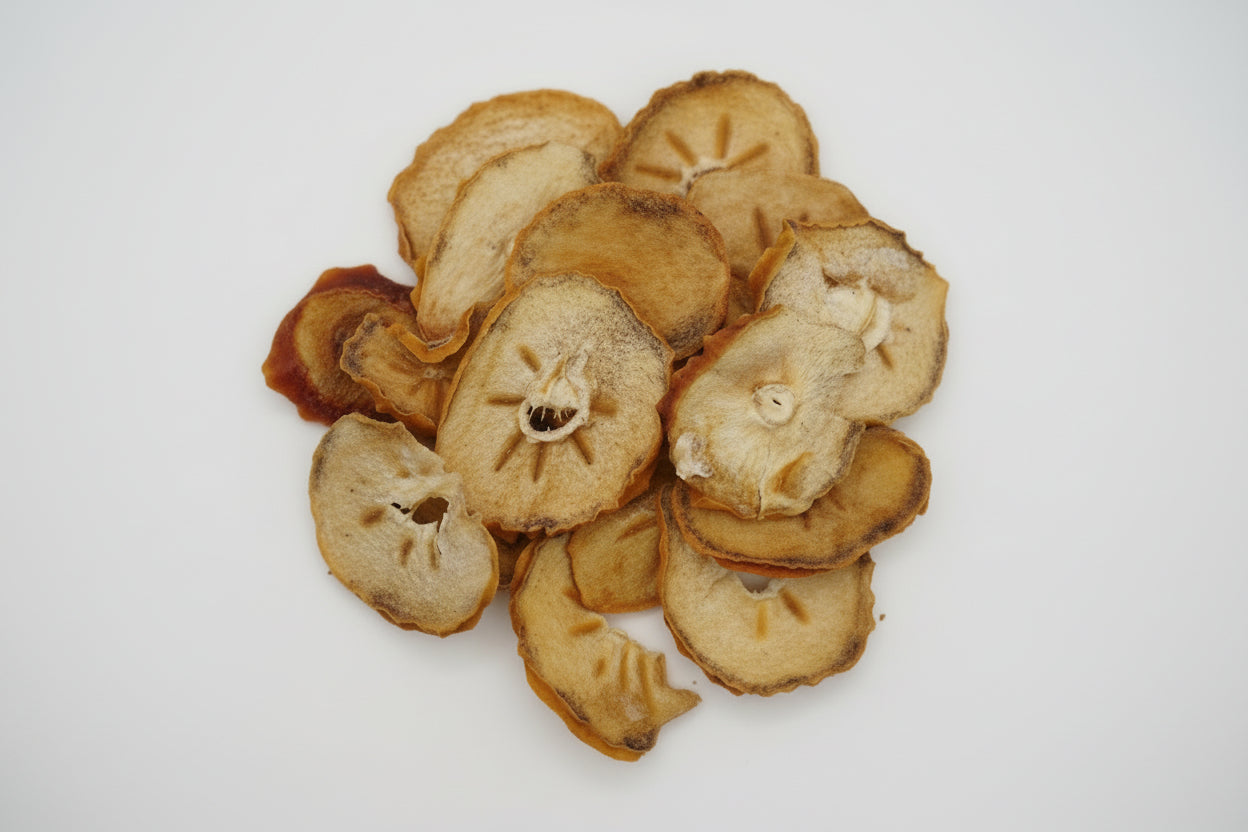 El kaki deshidratado es uno de los tesoros ocultos de nuestra selección. Con un sabor cálido y dulce que recuerda al caramelo natural, su textura es tierna, suave y muy aromática. La deshidratación lenta potencia sus notas melosas sin necesidad de añadir nada más.